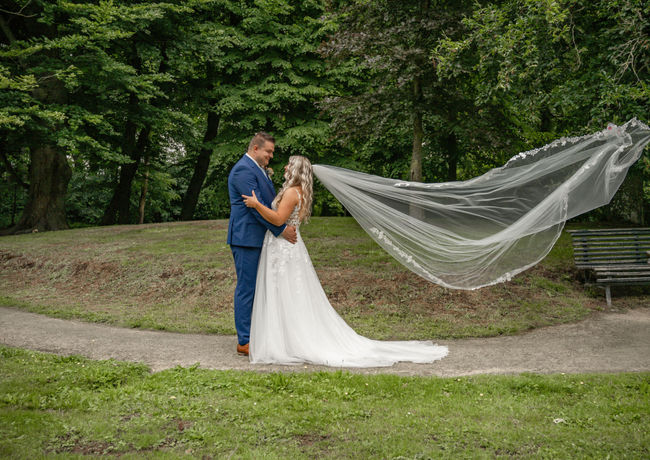 In hun vertrouwde dorpje in Friesland begon de dag: Hilbert maakte zich klaar in hun eigen huis samen met zijn moeder, terwijl Angela zich bij haar ouders voorbereidde. Na een gezellige start met koffie en taart trokken we met de familie naar het prachtige Stania State om de eerste foto’s te maken. Het officiële ja-woord volgde in het gemeentehuis, waarna de dag in stijl werd voortgezet in een echt bruin café in hun dorp. Daar werden ze omringd door vrienden en familie en kon het feest pas echt beginnen.